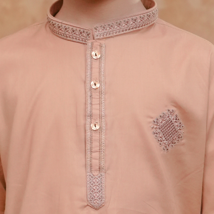Our Boys' KURTA Pajama blends comfort and style. Crafted from Soft Cotton fabric, it’s easy to maintain and perfect for any occasion. The Kurta features beautiful embroidery and a modern band-type collar, paired with a well-stitched Pajama.
